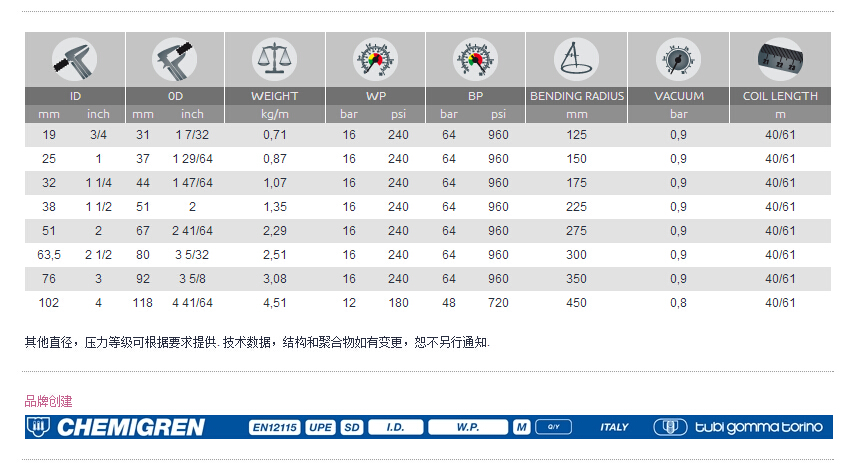 TGT食品級(jí)化學(xué)品排吸管 CHEMIGREN SD/16