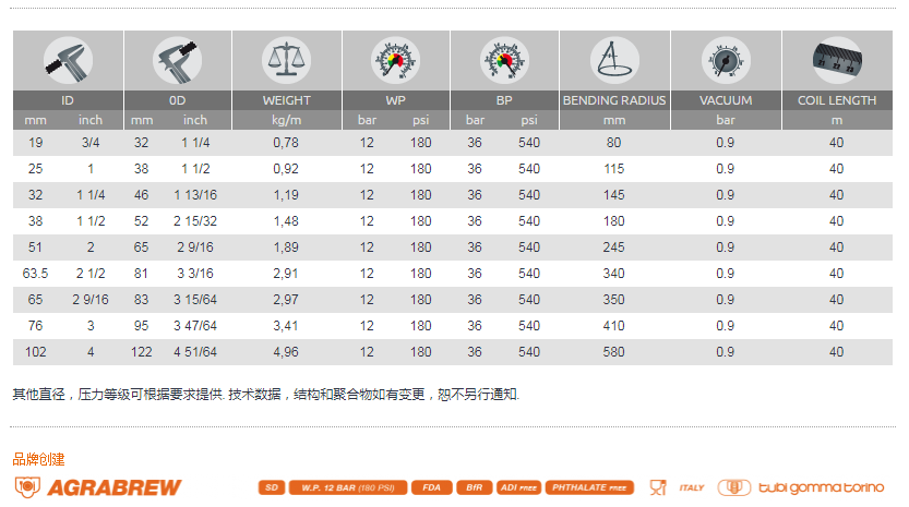 TGT啤酒飲料食品管 AGRABREW SD/12