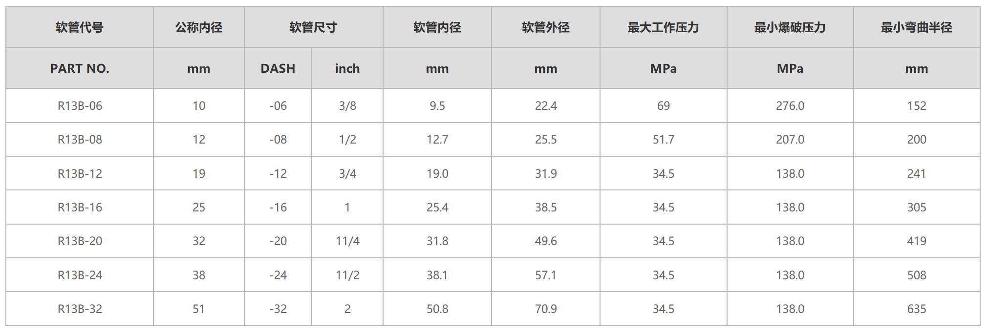 石油基液壓油, 水乙二醇液壓油, 潤滑油, 空氣和水。用于1.7 MPa以上的壓縮氣體場合,軟管需針刺。